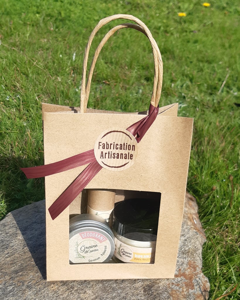 Ce coffret comprend : - Un stick à lèvres au beurre de cacao et à l'huile d'amande douce - Un baume douceur au Calendula pour prendre soin des peaux fragiles (idéal pour les mains abîmées par le froid) - Un déodorant de poche, à emmener partout avec soi